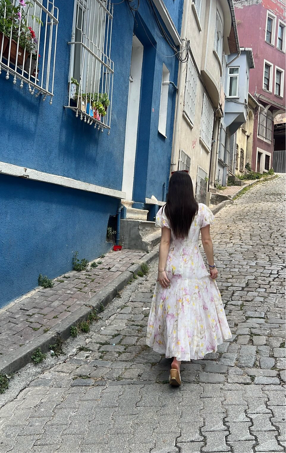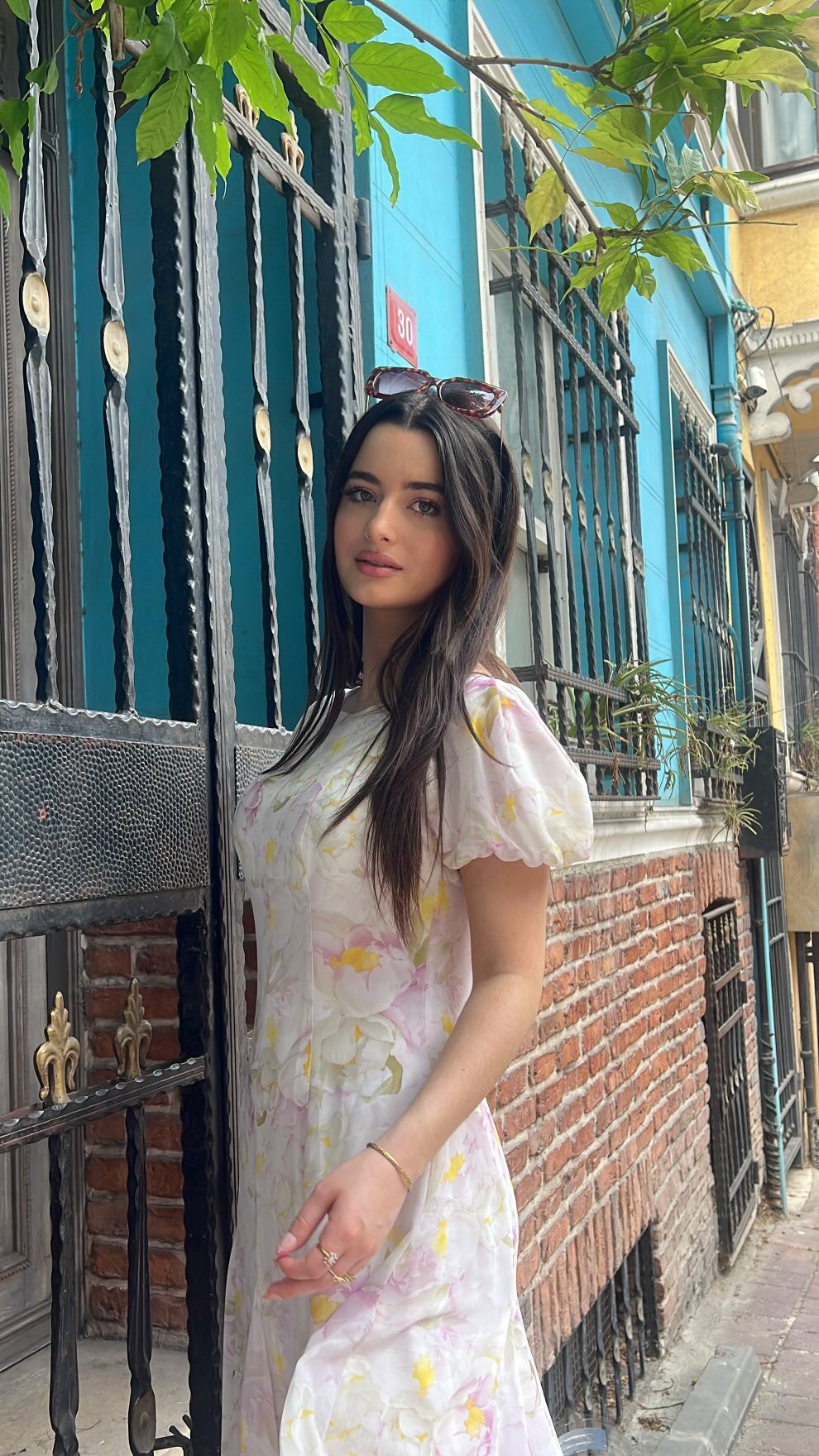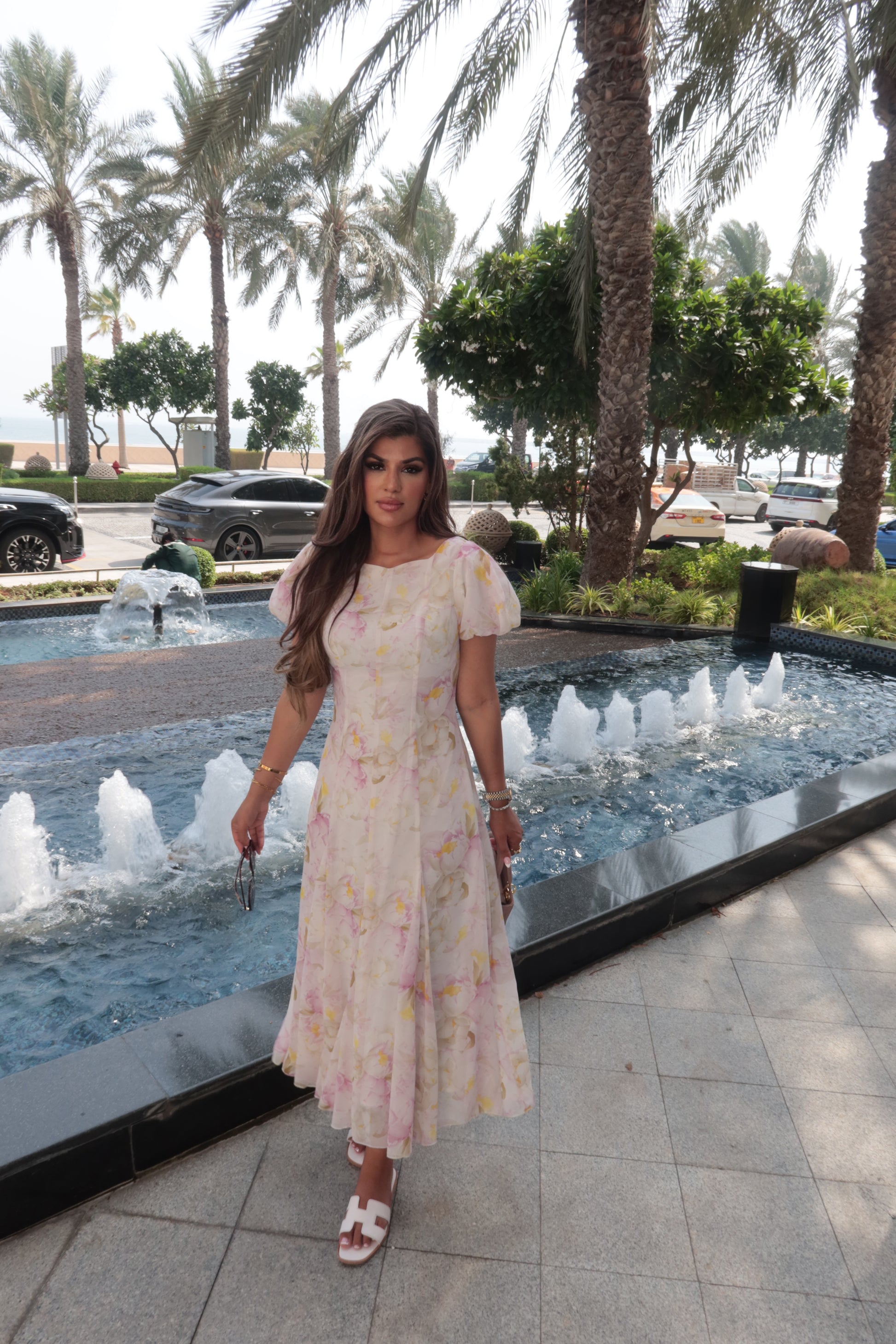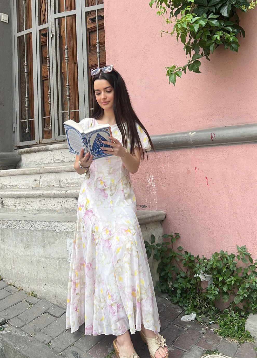 Fioraè is romance with presence - a dress designed to captivate in quiet, confident grace. Its delicate floral print, like watercolour in motion, flows across an ankle-length silhouette crafted to flatter with ease and refinement.