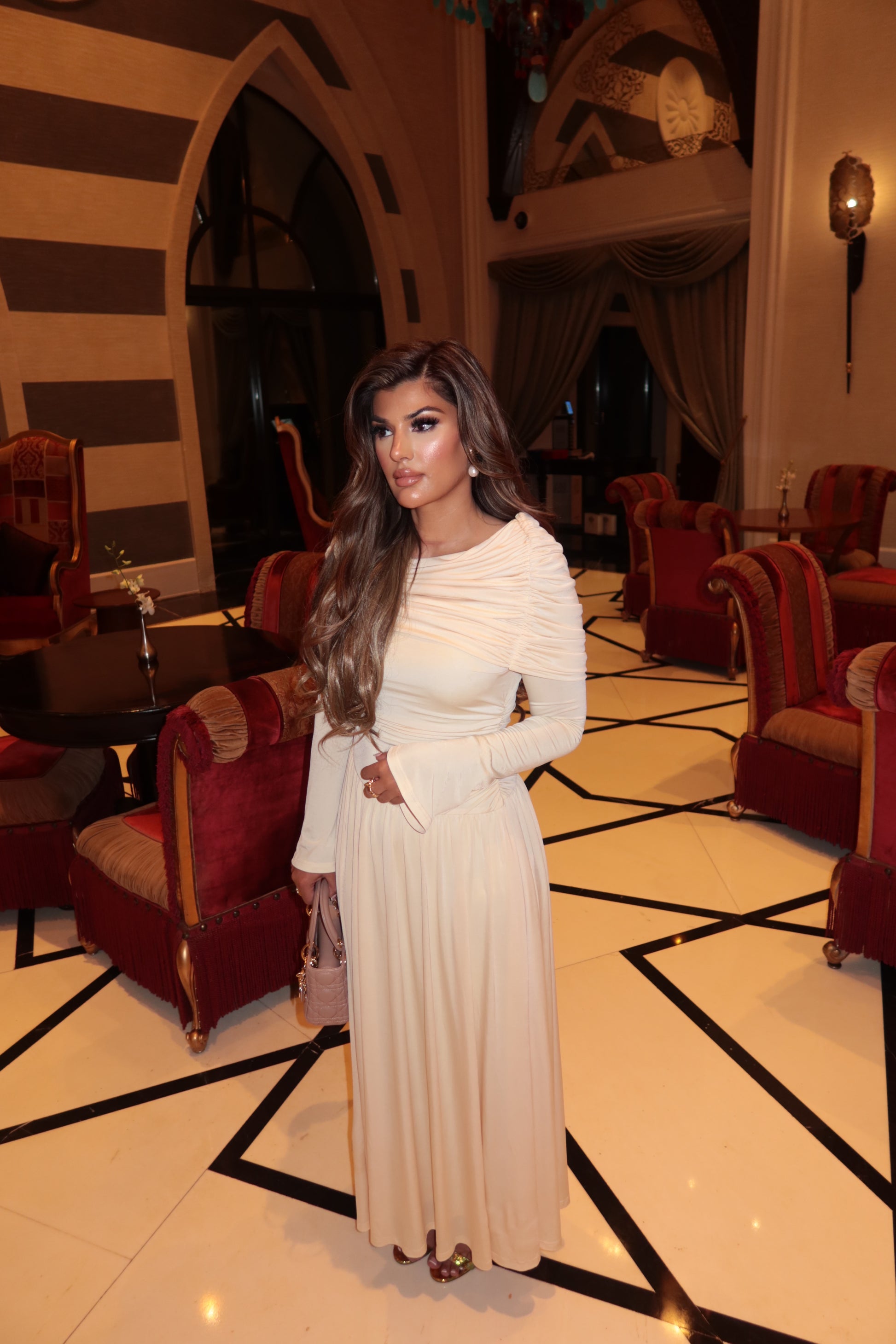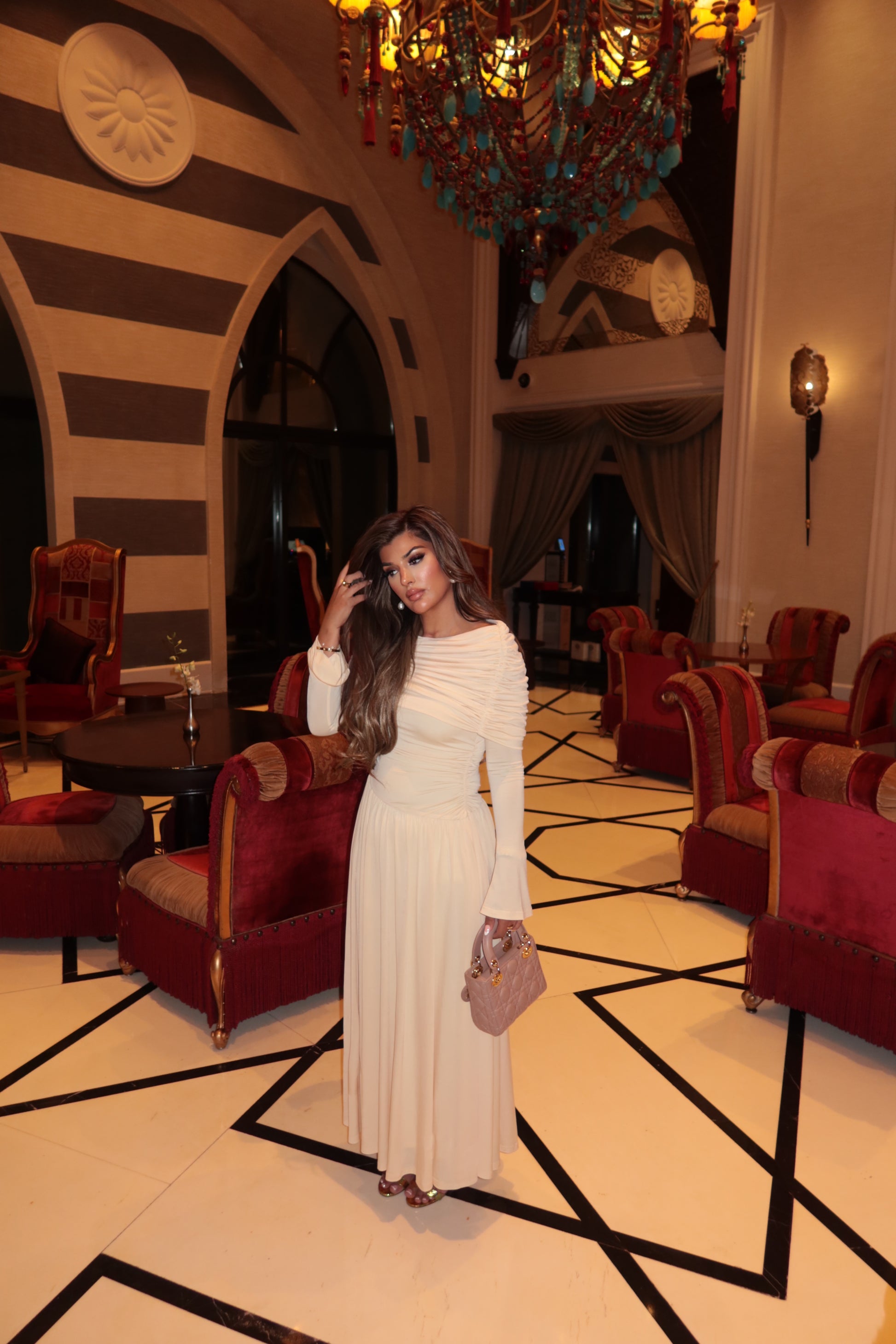 This is a piece for golden hours and quiet entrances - where softness speaks volumes.