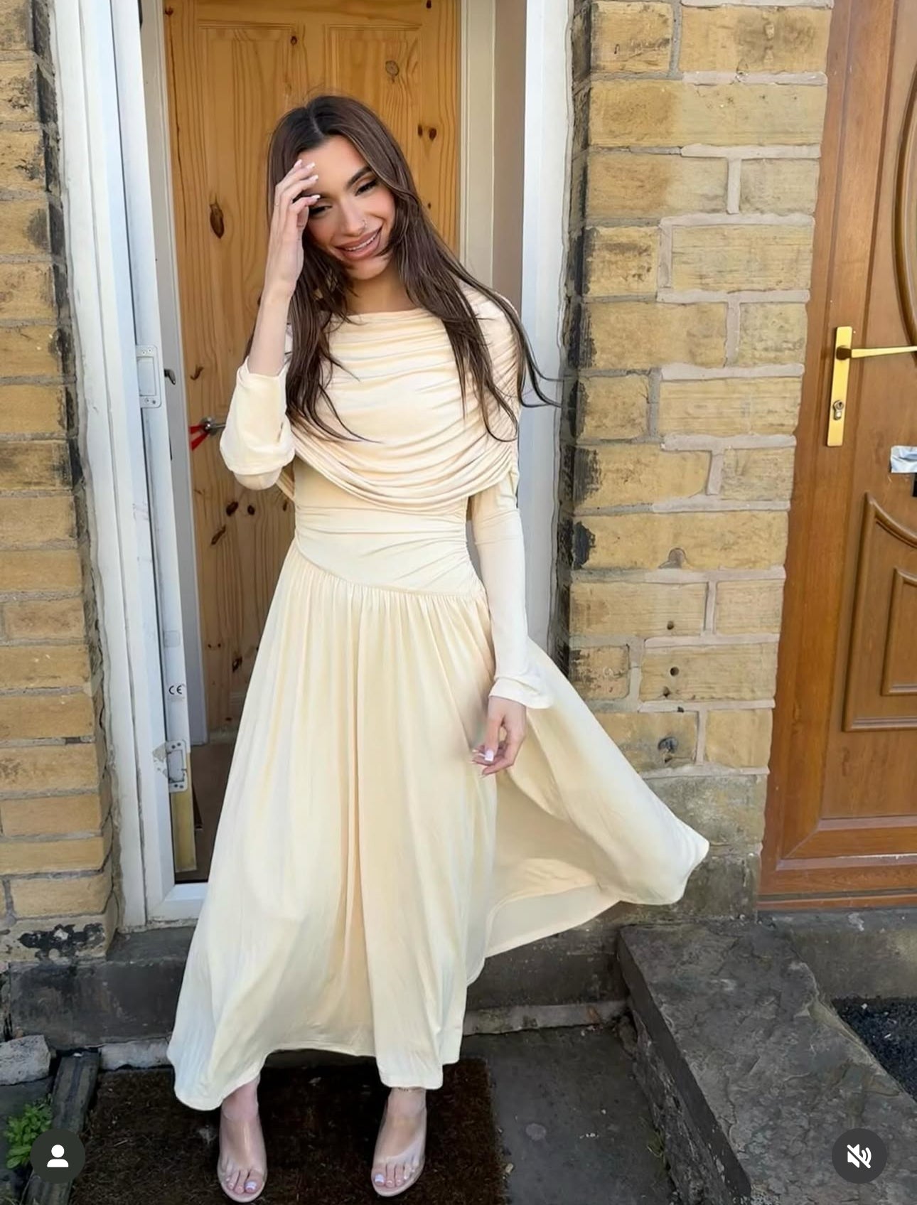 - Full-length gown in butter yellow (Buttercream Bloom)